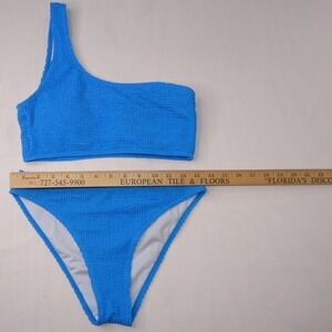 Blue Textured One Shoulder Bikini Swimsuit Set Women's Size Medium