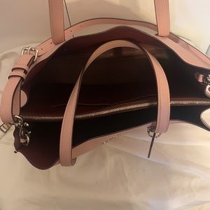 Elegant pink tote bag by Coach. Features dual handles and adjustable strap. Perfect for everyday use.