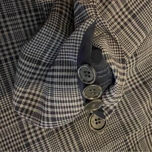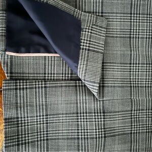 Chic navy and grey plaid blazer by J. Crew. Sommerset style. Italian stretch wool by Tollegno 1900. Boxy fit with a light pink felt under collar for a pop of color. Measurements in photos. Gently worn. Beautiful blazer, functional front flap pockets. Covered cuff buttons. Middle back vent.
