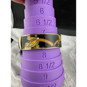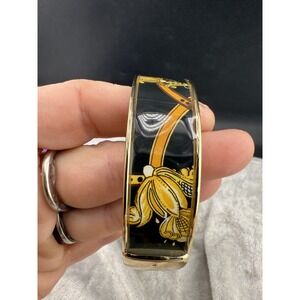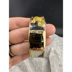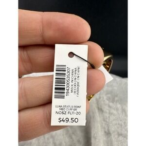 Chico's Bangle Bracelet Luna Status Print Black White Gold Tone 8" Signed