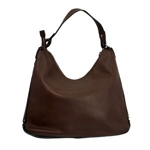 Keywords: hobo, leather, designer, chic, classic, everyday, structured, zipper closure, leopard lining, gold hardware, versatile