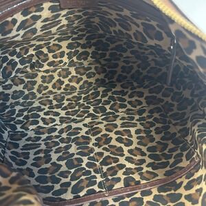 Interior is fully lined in a signature leopard print fabric and includes interior slip pockets for organization. Top zip closure.