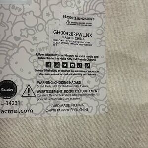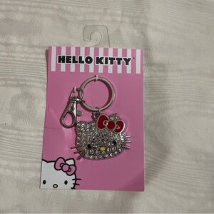 New with tags. Never opened or used. This key chain features Hello Kitty’s face in sparkly rhinestone crystals, her yellow nose, and her red bow. Perfect to attach to keys, bags, or backpacks.