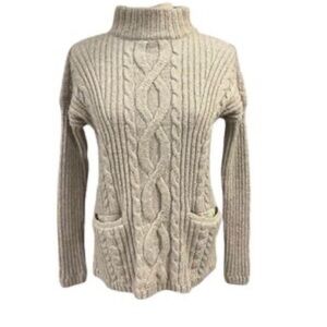ABERCROMBIE & FITCH cable knit chunk women's tan Mock Neck Sweater SZ Small EUC front pockets oat color
