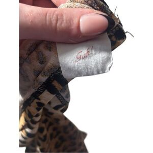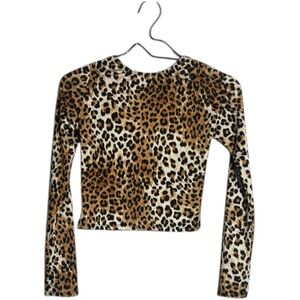 Like new condition, no viable flaws; long sleeve, fitted and stretchy, open back, cropped, brown and black leopard print
