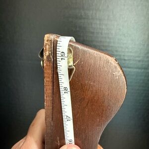 Beautifully crafted wooden corner shelf. Rich brown finish. Perfect for displaying decor.