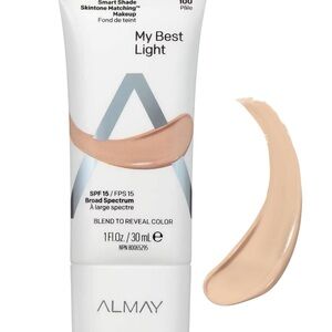 Almay foundation featuring Tonemic Technology. Starts off white and blends to a beige shade. Lightweight liquid formula.
