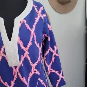 Pre owned in good condition, pink, white and purple tunic dress. Spring and Summer will be here soon. Signature Lilly Pulitzer style. Cruise wear.