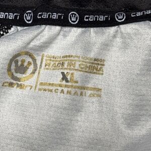 The Canari Cycling Jersey is a Men's XL black and white bicycle top with a full zip closure, perfect for cycling enthusiasts. Made of polyester in a colorblock pattern, this athletic fit jersey features a half zipper design and is ideal for casual rides. The jersey also pays homage to the character Black Canary, making it a stylish and functional choice for any cyclist.