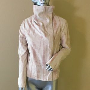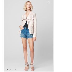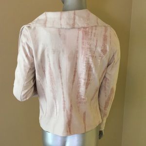 Blank NYC cream tie-dye faux suede drape front jacket. Absolutely gorgeous and oh soft faux suede. Front zip with two zip pockets. Fully lined. Polyester/spandex blend. Dry clean recommended.