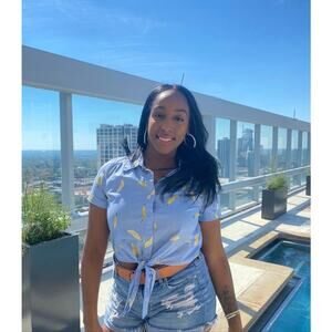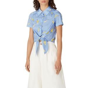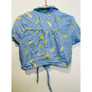 MILLY Blue Yellow Banana Printed Cotton Bonnie Tie Front Crop Top Size Medium