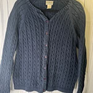 Vintage 1990s LL Bean Cable Knit Cardigan Sweater Navy 100% Cotton Hong Kong XL