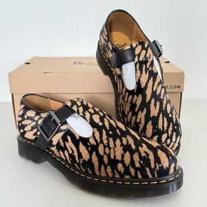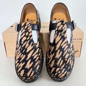 NEW DR MARTENS Genuine Calf Hair Black Camel T-Bar Shoe EU 45 US M 11 W 12