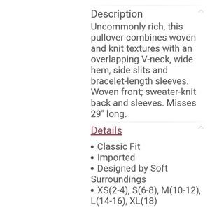 SOFT SURROUNDINGS Willa Vneck Mixed Media Tunic XS