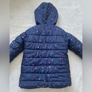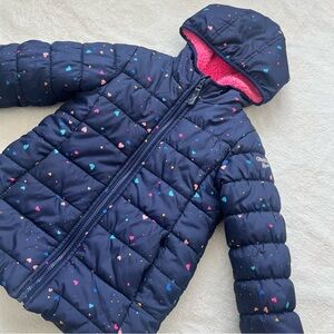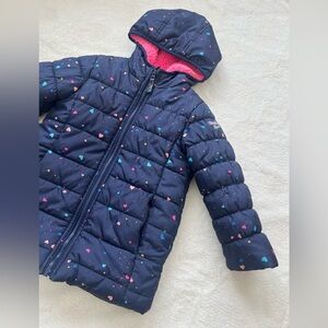 OshKosh B'gosh Navy Puffer Jacket with Colorful Heart Print | Girls Size 5