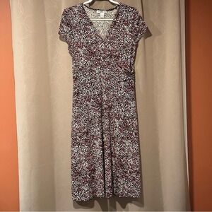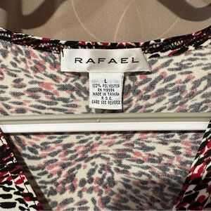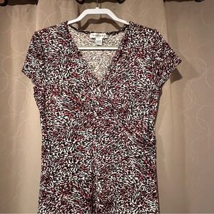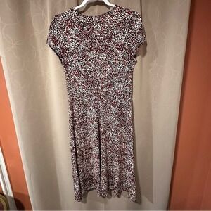 Rafael Womens V-Neck Short Sleeve Abstract Print Midi Dress Red Black White Sz L