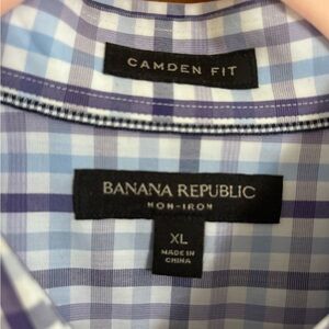 Banana Republic Men's Purple and White Plaid Shirt