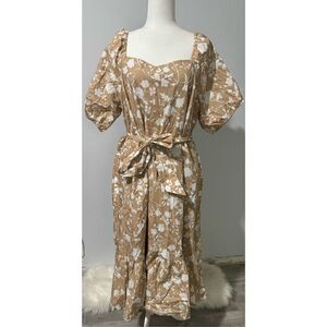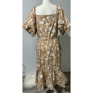 Talbots NWT Silhouette blooms puff sleeve poplin midi dress cotton midi floral fit flare with pockets 16W