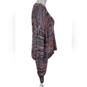Multicolor wool (55% Alpaca, 23% Wool, 22% Polyamide). Sweater. Long sleeves. High neckline. 20" from shoulder to hemline. Imported.