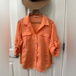 Calvin Klein Linen Orange Shirt Button Up Knit side Panels sz L