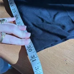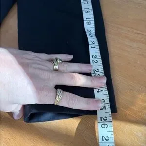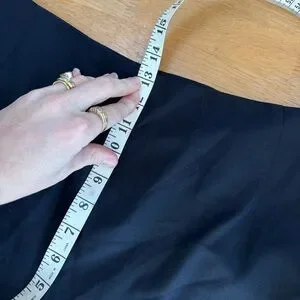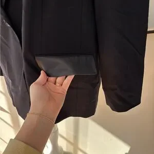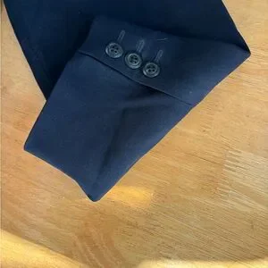 Solid navy pant suit with single button closure. Pockets and back detail are a buttery smooth leather. Pants are exact match but are size 20W however they are elastic as back sides for variable fit. Owner usually wore 18W all around. This suit was never worn and still has all original tags on both pieces.