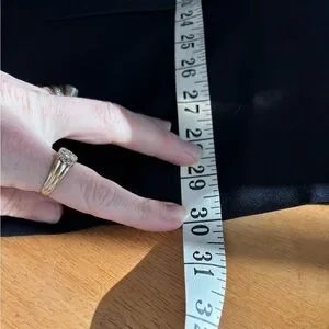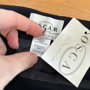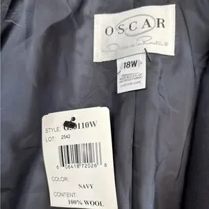 Oscar by Oscar De La Renta navy blue wool and leather trim pant suit 18W read