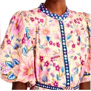 Farm Rio Superbloom Belted Puff Sleeve with a fabric & beaded belt size medium