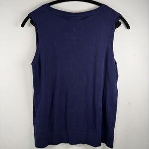 August Silk Women XL Navy Knit Top Crew Neck Sleeveless Sweater Vest Silk Blend