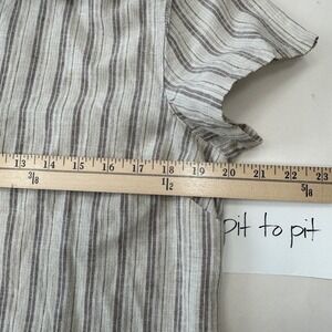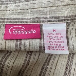 Cappagallo Linen Blend Button Down Shirt Striped Embroidered Short Sleeve Medium