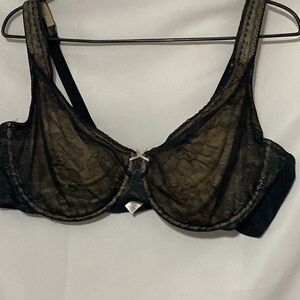 Cacique Wo size 46 C MODERN LACE COVERED Black Lace Bra UNDERWIRE GOOD CONDITION