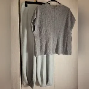 Free People Freya Set-Gray Wide-Leg Pants and matching cropped sweater NWT