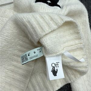Chic V-neck sweater by Off-White. Cream color with bold black letter details. Perfect for casual wear.
