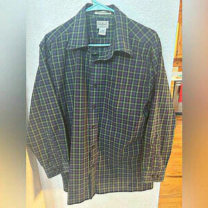 LL Bean wrinkle resistant plaid men’s button up shirt. Size: Large - Reg.