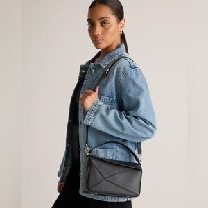 Quince Italian Leather Patchwork Crossbody in black