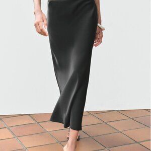 Zara Satin Black Midi Skirt