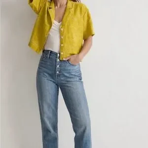 MADEWELL Embroidered Linen-Blend Resort Crop Shirt Medium