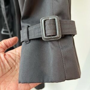 Stay stylish and warm with this elegant gray trench coat. Perfect for any occasion. Interior zip out liner and extra button. In great preowned condition. Only imperfections of note is couple of small fabric surface scratch at one shoulder and base of jacket which are essential unnoticeable (see last 2 picture).