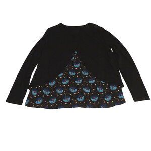 Ann Taylor Loft Women Blue Layered-Look Floral Long Sleeve Knit Top Size L