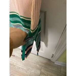 Tuckernuck Stevie Womens Dress Maxi 3/4 Sleeves Knit Side Slits Striped Green Cream