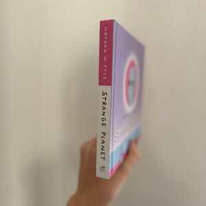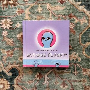 Strange Planet book featuring whimsical illustrations by Nathan W Pyle. Vibrant pink and purple cover.
