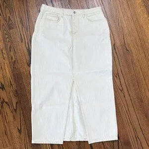 Elegant cream maxi skirt by Mango. Features a front slit. Perfect for casual or dressy looks.