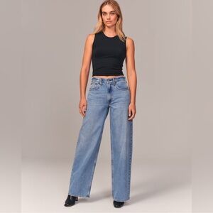 Like New. Abercrombie & Fitch The Wide Leg Mid Rise Jeans Blue Size 0. No Flaws. The length is XL.