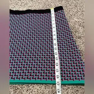 Make a bold fashion statement with this pre-loved Zara geometric print skirt, featuring a vibrant mix of green, black, and pinkβperfect for a trendy and chic look!