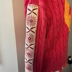 Washed peace patch cable knit sweater…loved wearing this with cream jeans or light wash denim