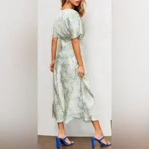 Aren't these vibes Much Better than sticking to the same old ones? Shine in florals all year long in this silky midi. Featuring a V neckline, flowy cap sleeves, and a sultry side slit. Style yours with mules and waves.