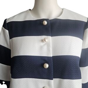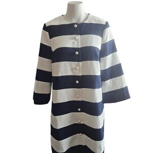 Tuckernuck Blue/White Striped Millie Dress Coat with Pearl Buttons Med NWT