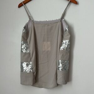 Sequin Striped Silver and Gray Women's Top size M NWT