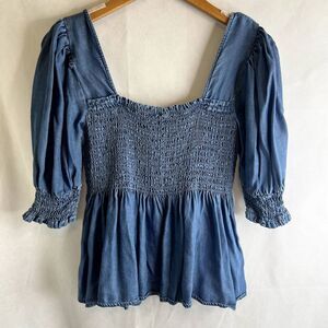 K/Lab Smocked Bodice Tencel Denim Blouse Size Small
