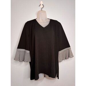 Chico’s Black&White 3/4 Bell Sleeve Blouse Bow Tie Back Detail Woman’s Sz 3