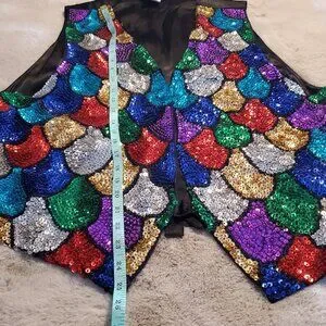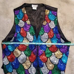 This vest is so much fun, with the shimmering sequins that twinkle and catches the light at every angle. The rainbow sequin vest pattern brighten ups every outfit. Please see pictures for measurements.